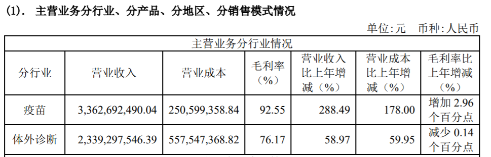 2021年万泰生物实现收入57.5亿元人民币,同比增长144.25%;实现归母净利润20.21亿元,同比增长198.59%。包括二价HPV疫苗在内的疫苗业务,2021年贡献了将近60%的营收,该公司疫苗业务的毛利率水平也提升了2.96%.