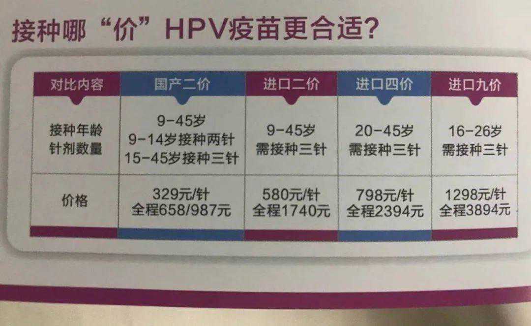 “价”前面的数字越高,意味着疫苗可预防的病毒种类越多,除二价疫苗外,全球上市的还有四价和九价HPV疫苗。目前在中国上市的HPV疫苗有4种,分别是馨可宁二价疫苗(国产,万泰生物)、希瑞适二价疫苗(Cervarix,葛兰素史克),以及佳达修(Gardasil)四价及九价疫苗(默沙东)。