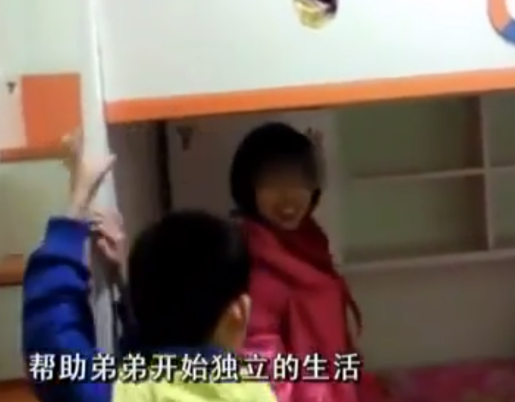 不仅自理能力比以前强了不少,还会教弟弟怎么穿衣叠被子。
