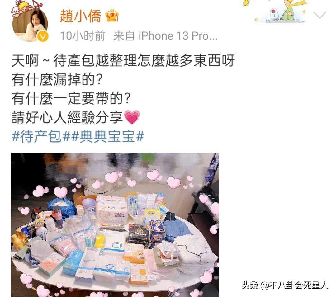赵小侨透露女儿小名叫典典,她还分享了很多待产包。不过,应该是出于对小孩隐私的保护,夫妻俩并没有晒出女儿的照片。