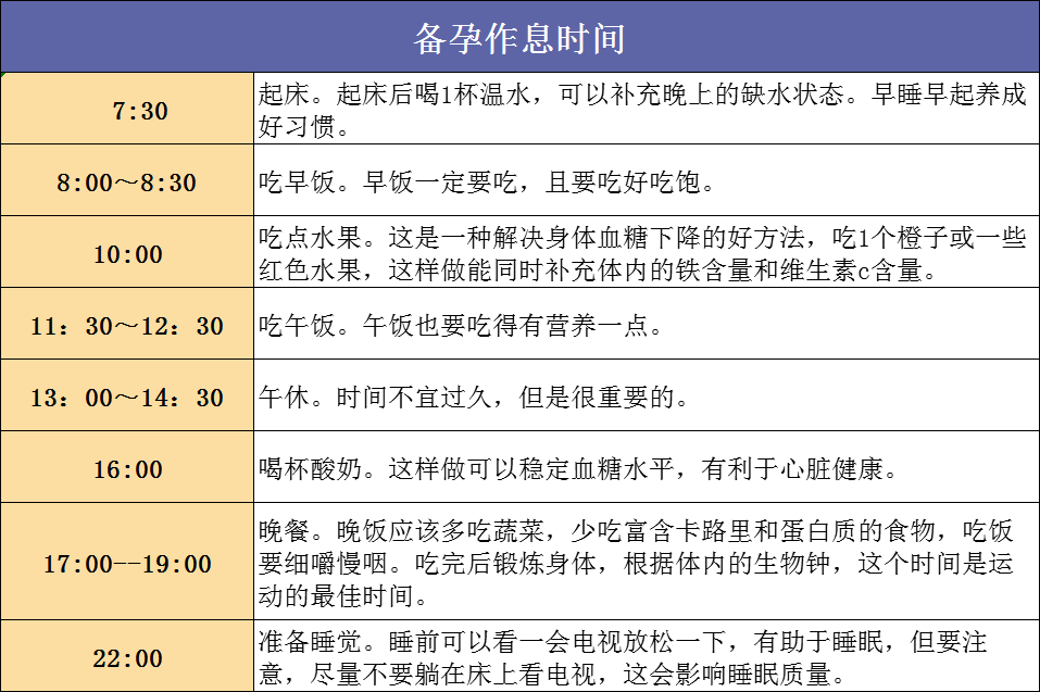 首先先来分享一下我们的备孕作息时间表,让大家可以对我们的日常安排有一个初步了解。